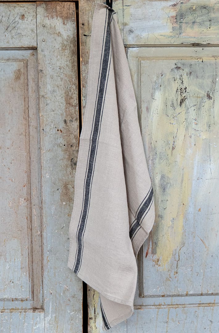 Kökshandduk linne med grå-svart randig kant (stentvättat)