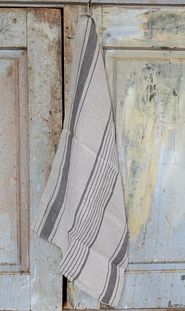 Kökshandduk linne oblekt med ränder i grå-svart (stentvättat)